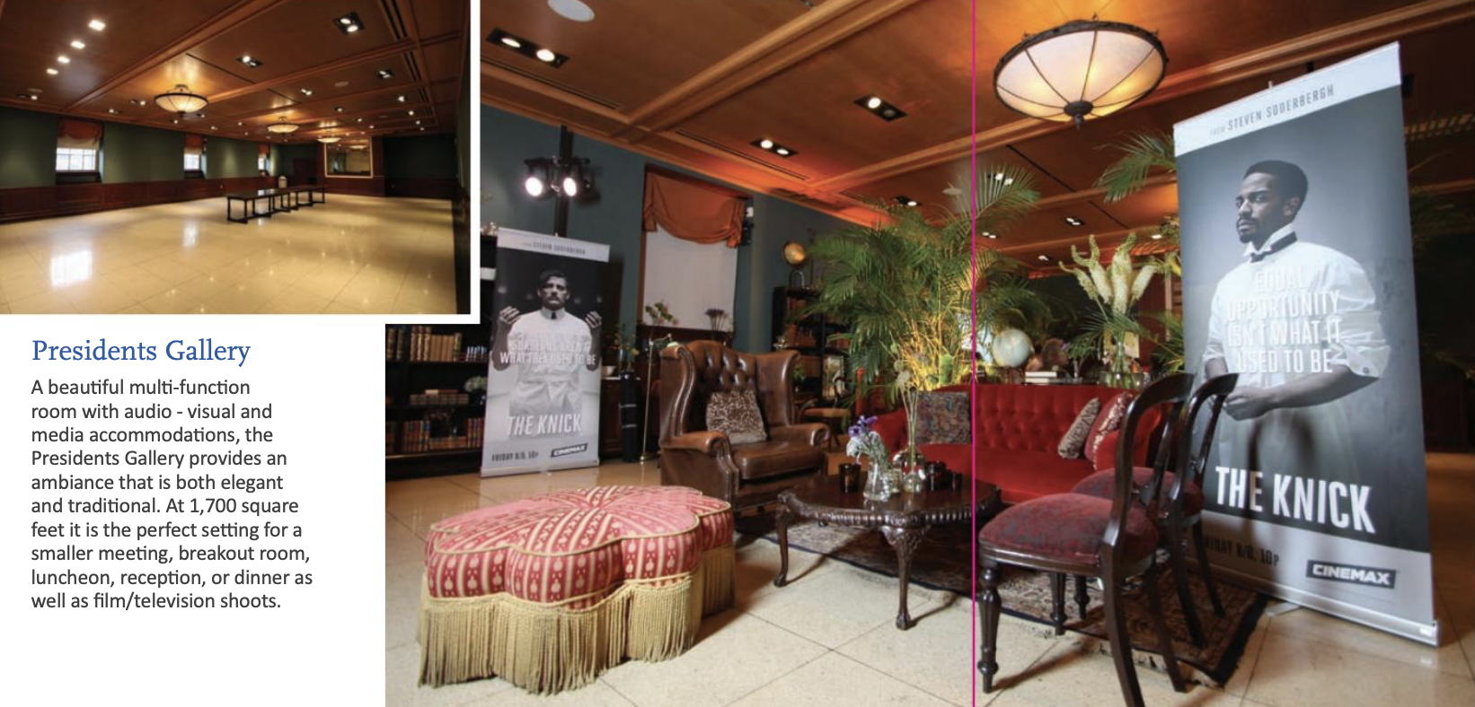 The meeting, breaks, luncheon, and cocktail reception will take place in the Presidents Gallery.